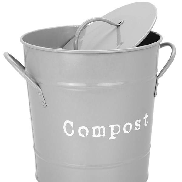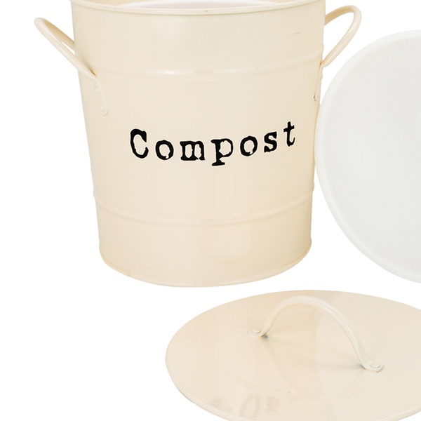 Store and dispose of household food waste in a traditional vintage-style compost bin featuring two side handles for easy transportation