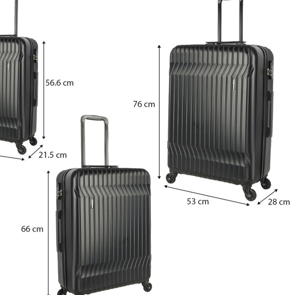 • Three-piece set: includes 20-inch cabin case, 24-inch medium suitcase, and 28-inch large suitcase