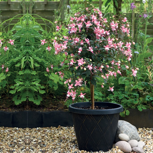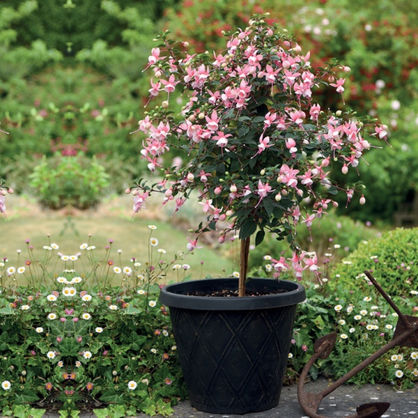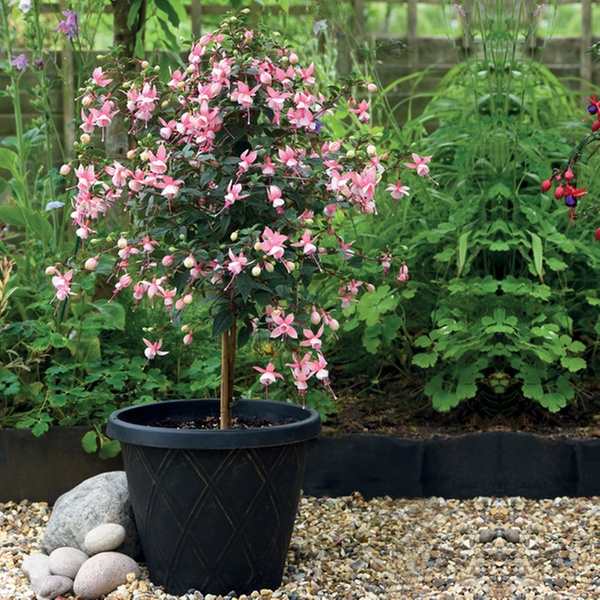 - Trained as standards, with a rounded head of foliage and flowers above a clear stem