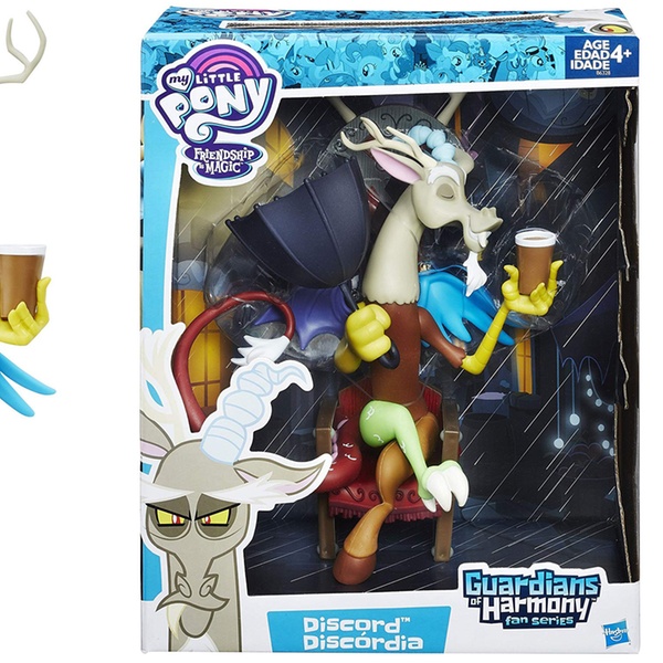 This toy figure is inspired by a My Little Pony character Discord featured with a removable throne, cup of hot chocolate and an umbrella