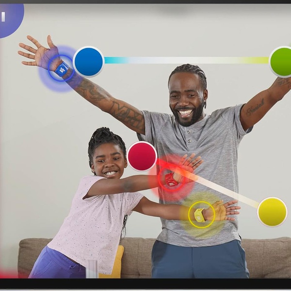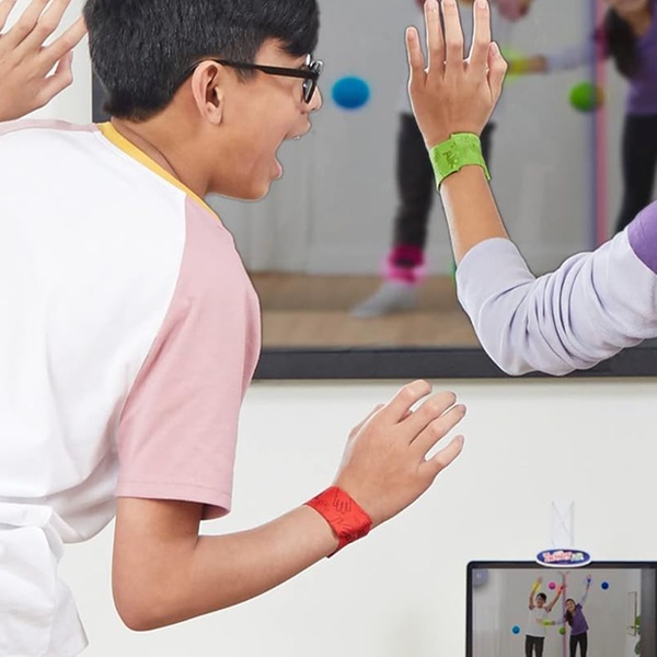 - Players match colourful wrist and ankle bands to on-screen spots for points