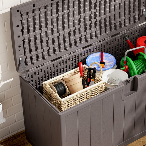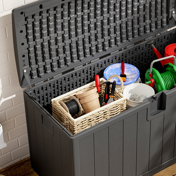 Stay organised and stylish outdoors with a weather-resistant deck box that blends form and function, keeping contents secure and dry