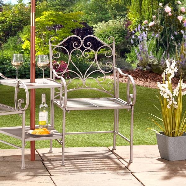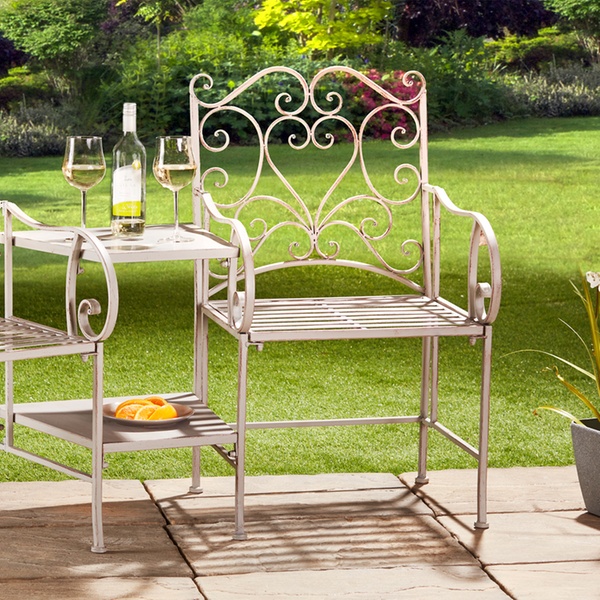 Ideal for the garden, patio, balcony and more, this set of two chairs and a table features heart design and slatted seats