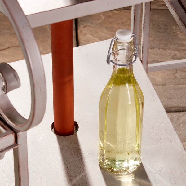 - Two-shelf table with a hole for parasol