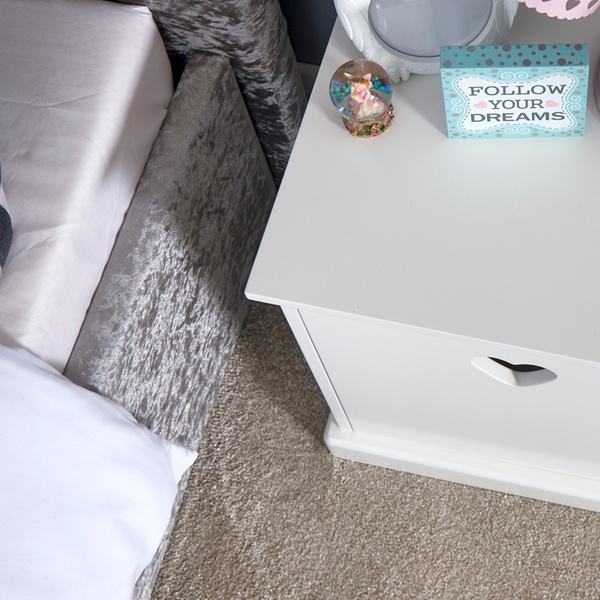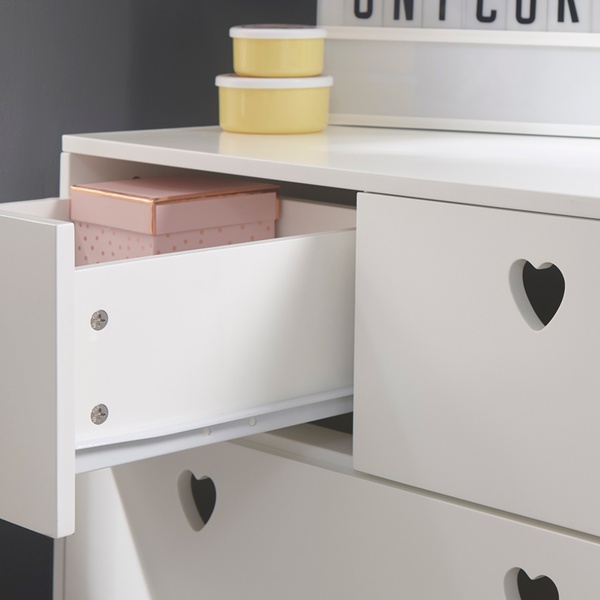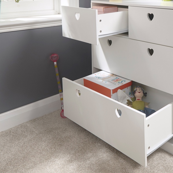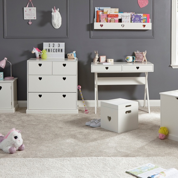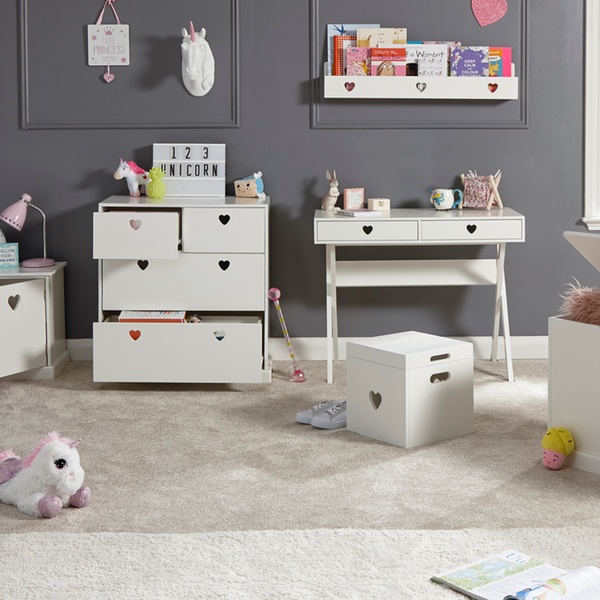 Reinvent child’s bedroom with this modern and stylish furniture featuring a heart cut out design