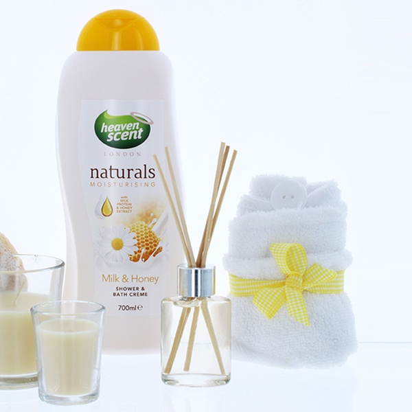 Featuring a shower and bath creme, candles and other extras, this set comes also with a white bag ideal to present the set as a gift