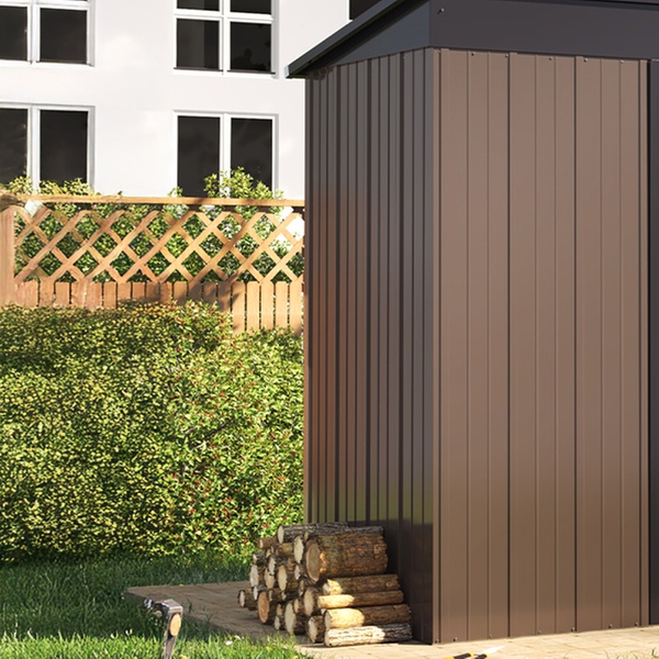 • Heavy-Duty Lockable Brown Metal Garden Shed