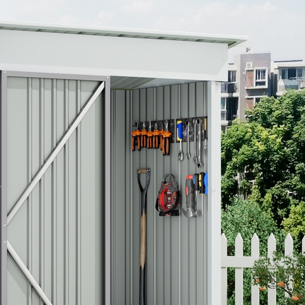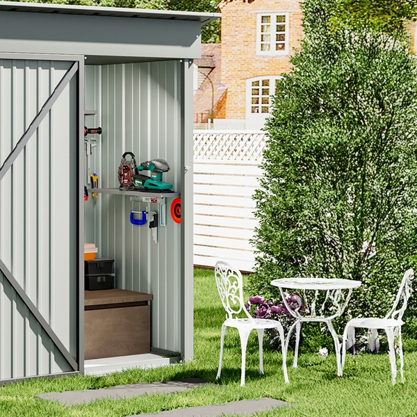 Heavy-Duty Lockable Light Grey Metal Garden Shed