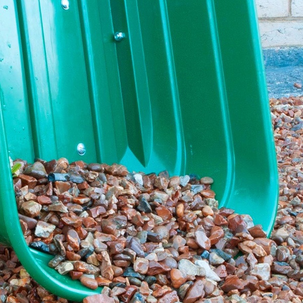- Composition: steel frame, heavy-duty plastic bowl and pneumatic tyres