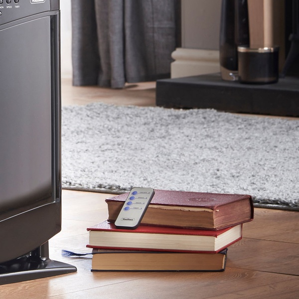 - Features buttons: on/off, fan speed, timer and ioniser on/off