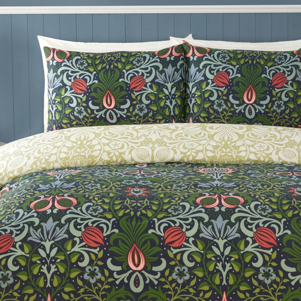 This stunning bedding features an intricate botanical pattern inspired by traditional designs