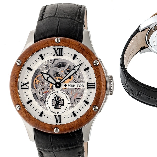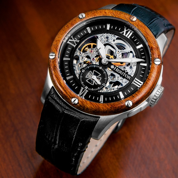 This elegant watch features a durable stainless steel case and a genuine wood bezel