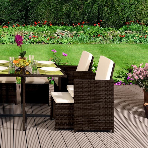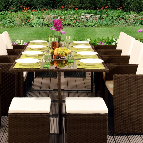 11 Piece Rattan Dining Cube Set