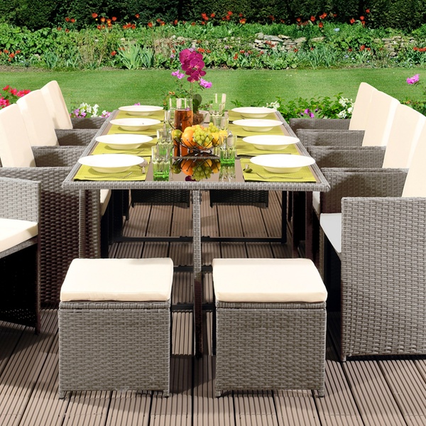 13 Piece Rattan Dining Cube Set