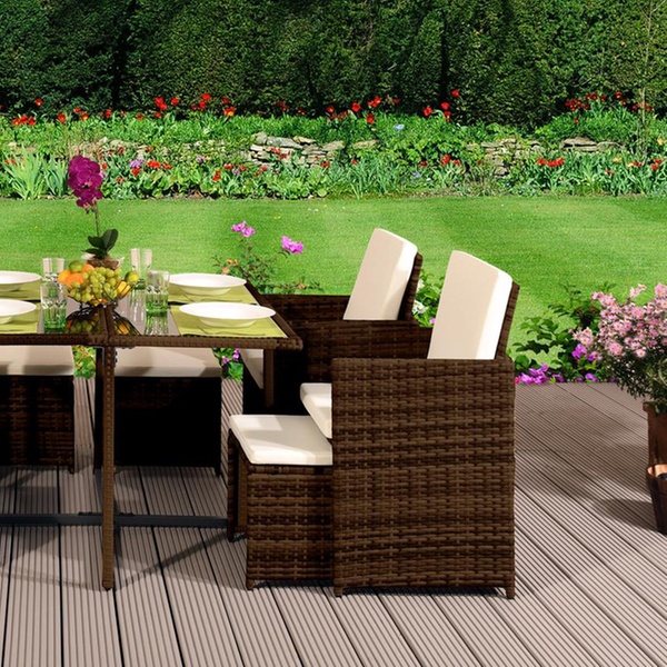 Today's Groupon offers 9, 11 or 13 Piece High Back Rattan Effect Cube Dining Set, distributed by Sleep Softly Ltd.