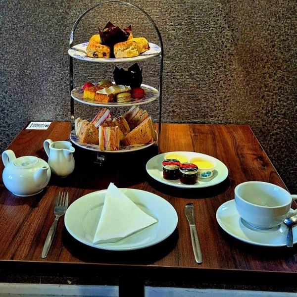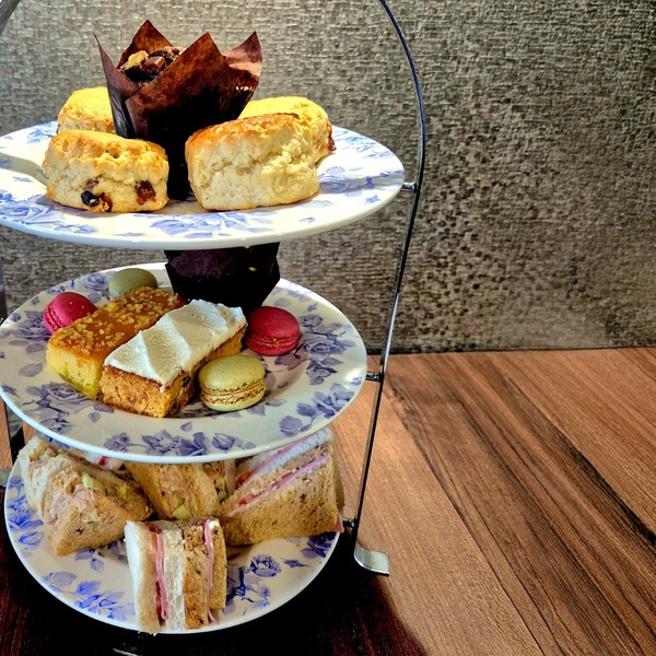 Fancy an afternoon treat? Enjoy a delightful selection of finger sandwiches, scones, and cakes that are sure to satisfy. Imagine indulging in freshly baked sultana scones topped with clotted cream and strawberry preserve. Each option also comes with your choice of tea or coffee, perfect for relaxing afternoons.