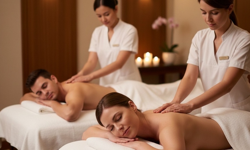 Unwind together with 1 or 2 couples massage sessions. Choose a 45-min full-body massage or 30-min back with 15-min shoulder, neck & scalp treatment. Perfect for relieving tension, boosting relaxation, and enjoying quality time side by side
