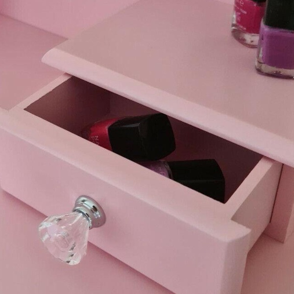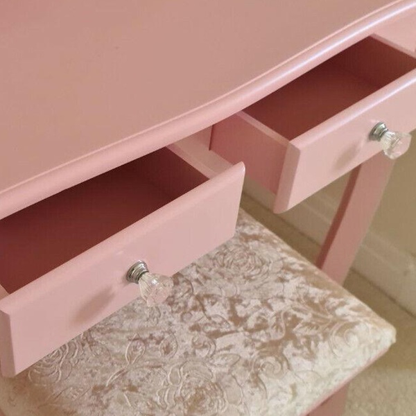 - Four built-in drawers provide ample storage for cosmetics and accessories