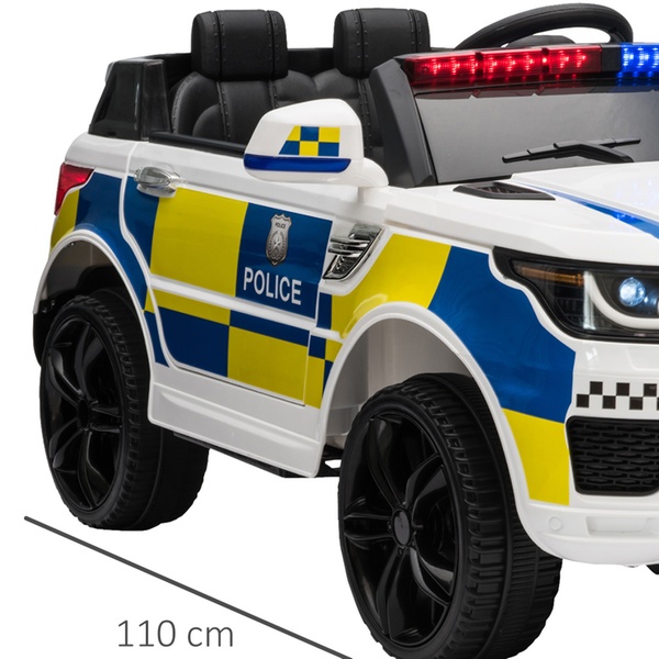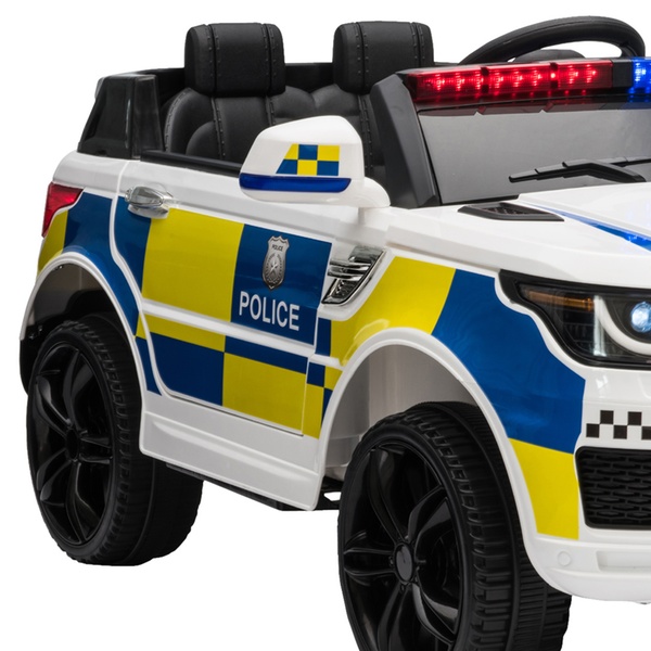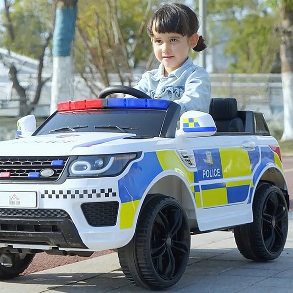 - Police car design, horn on steering wheels, working headlights and taillights, flashing police lights and wailing siren