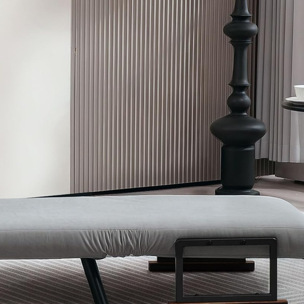 - Material: faux suede (100% polyester), foam, steel
