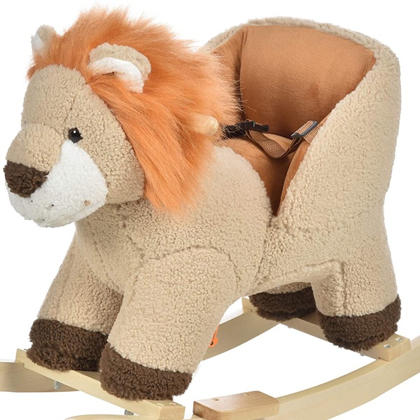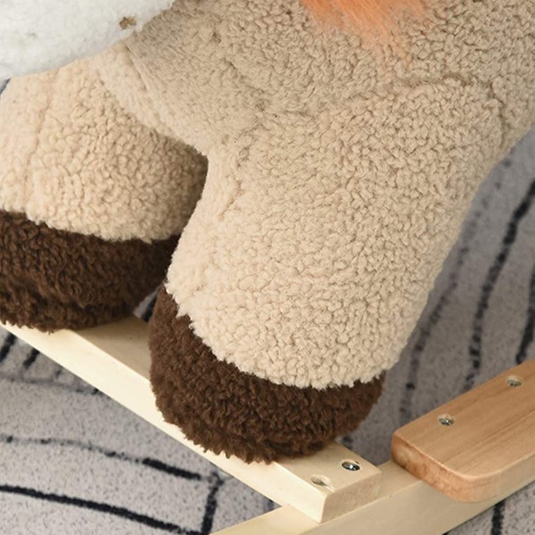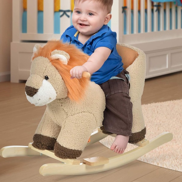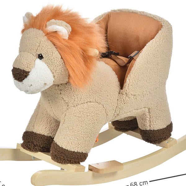 - Finished with a wooden rocking base which moves the ride-on forward and backwards gently
