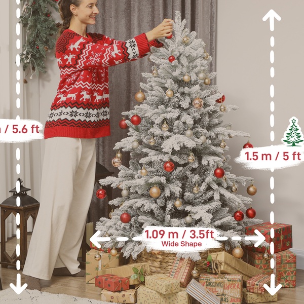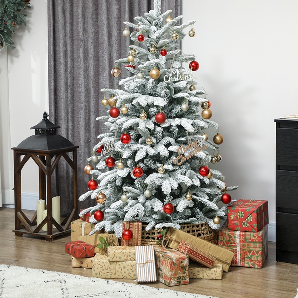 HOMCOM brings festive charm indoors with lifelike artificial Christmas trees designed to capture the magic of a snowy winter, crafted with moulded, snow-frosted branches and flame-retardant materials, each tree offers effortless setup, and a safe, stable display for years of holiday cheer.