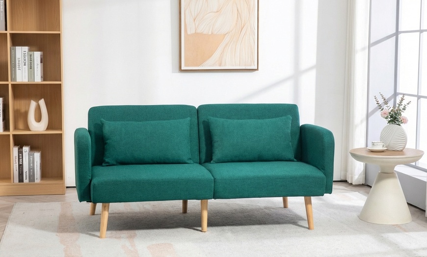 Today's Groupon offers a HomCom Convertible Sofa Bed in Green or Grey, distributed by MHstar UK Ltd.