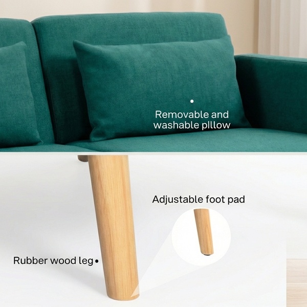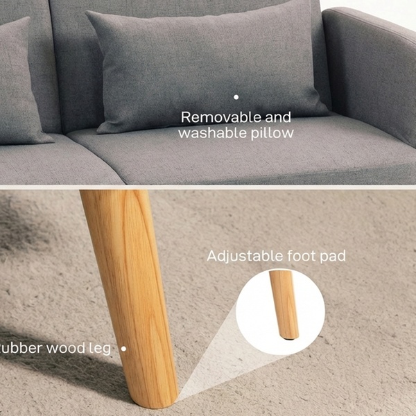 - Material: Polyester linen-look fabric, rubber wood, foam