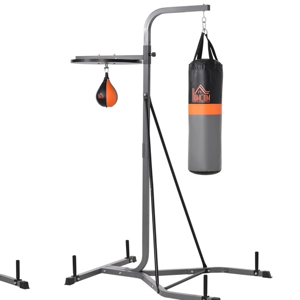 Featuring a duo design with punchbag and sandbag, this freestanding boxing station offers stability up to 100kg and 5 height levels for the punching ball
