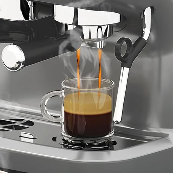 - Steam wand for frothing milk, suitable for cappuccinos and lattes
