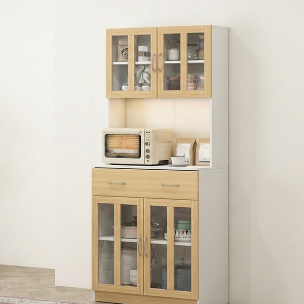 - Freestanding hutch-style cabinet suitable for kitchen, dining or lounge areas