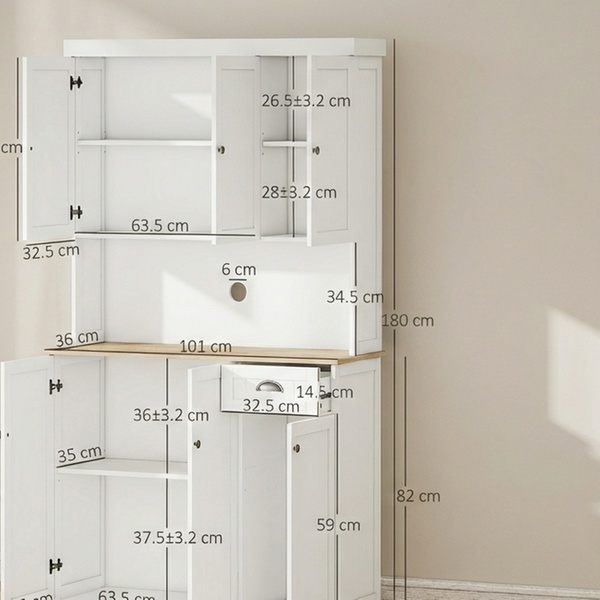 - Adjustable shelves for crockery, food items and small appliances
