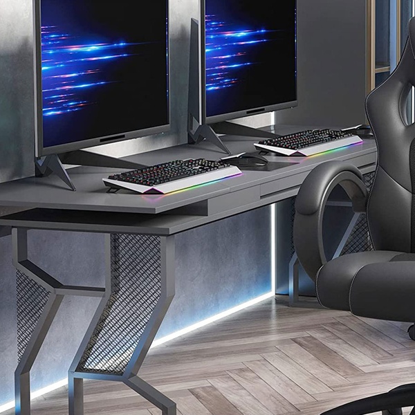 Made with comfort in mind, this gaming chair features a 360-degree swivel and wheels to easily maneuver around the desk