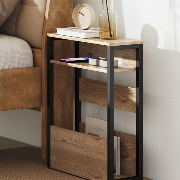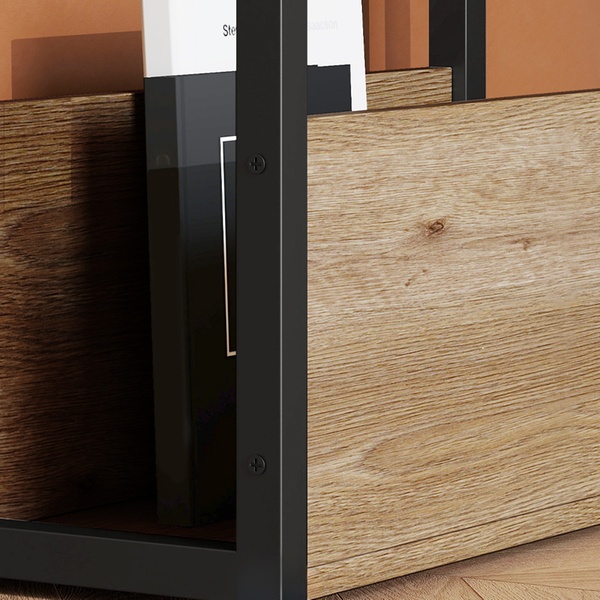 - Walnut brown wood-effect panels paired with a black metal frame for a bold, modern look