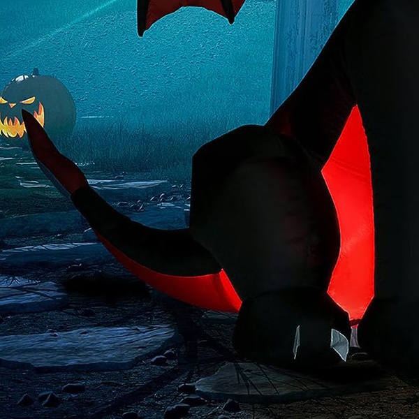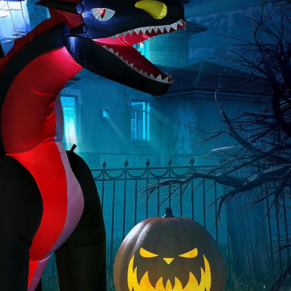 Illuminate gardens and patios with a 210cm inflatable dragon, featuring multiple LED lights for a eerie nighttime glow