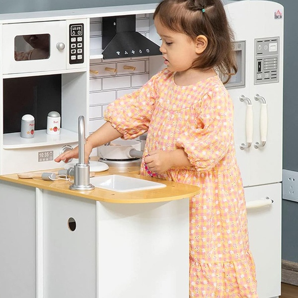 Model 2- White and wood Kitchen Playset, with Accessories, Storage Space: