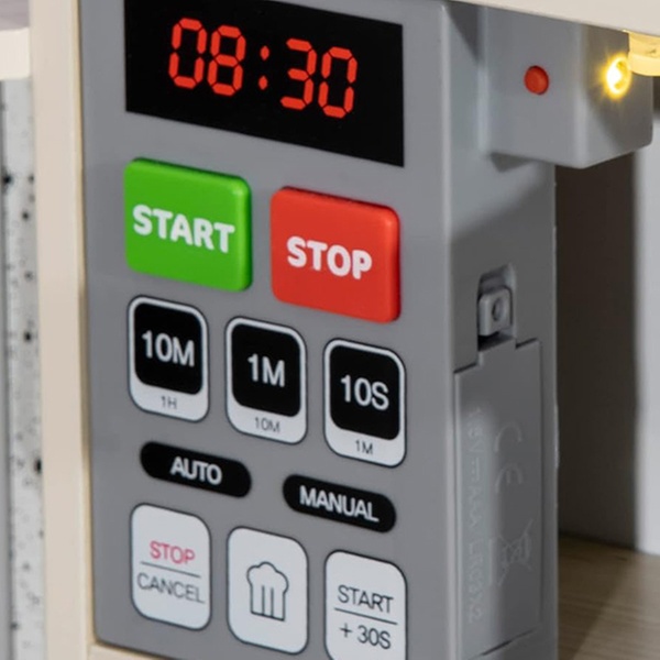 - Equipped with lights and sounds from the microwave, range hood, and knobs