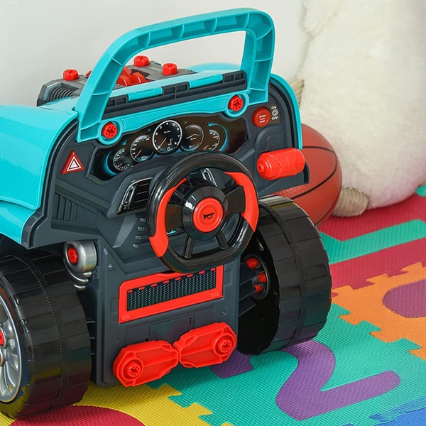 - Comes with 61 accessories, including screws and an RC car key with sounds.
