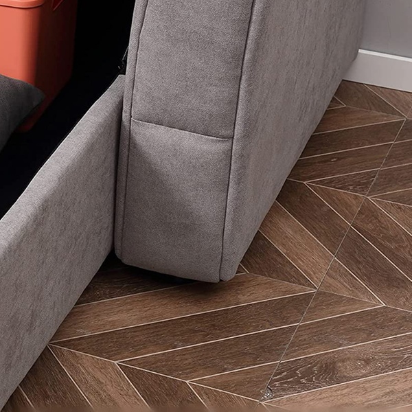 - Stylish and functional design with a grey linen-look upholstery