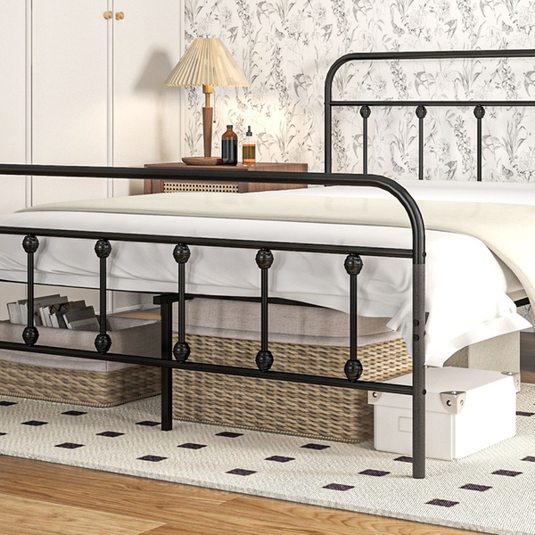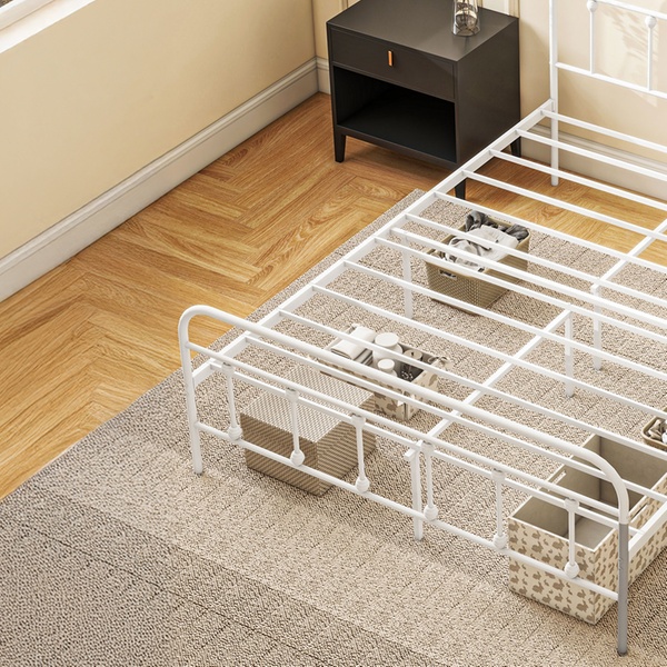 King Size 5ft Metal Bed Frame with Underbed in White or Black