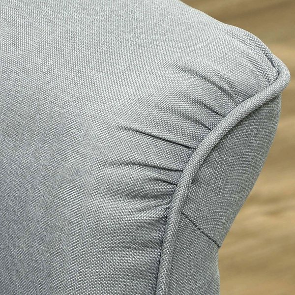 - Materials: Linen (100% Polyester), Foam, Rubber Wood