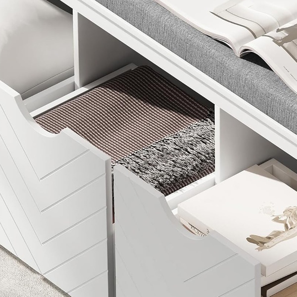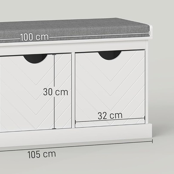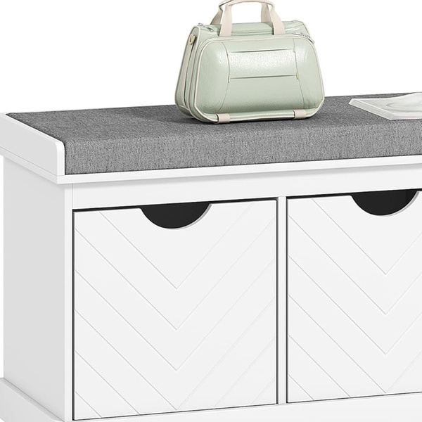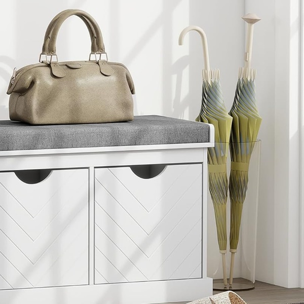 - Thick sponge-filled cushion seat for sitting while putting on or taking off shoes