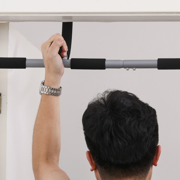 Suitable for chin-ups, push-ups and sit-ups, this steel doorway bar can be mounted at a home, office or gym