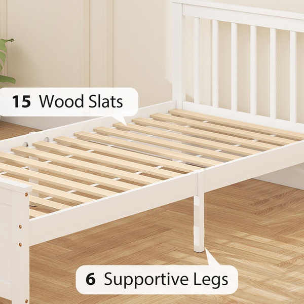 - 15 built-in slats with raised sides, headboard, and footboard to support a single mattress