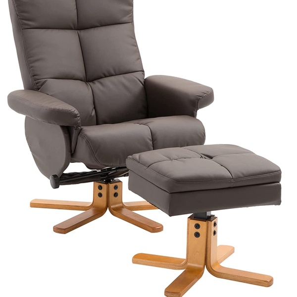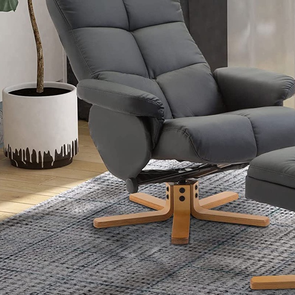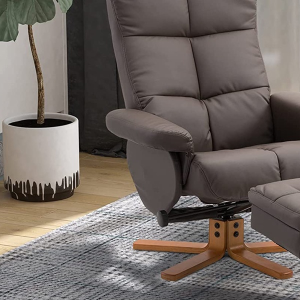 Featuring polished wood base, this swivel recliner with matching footstool can be ideal for resting at home