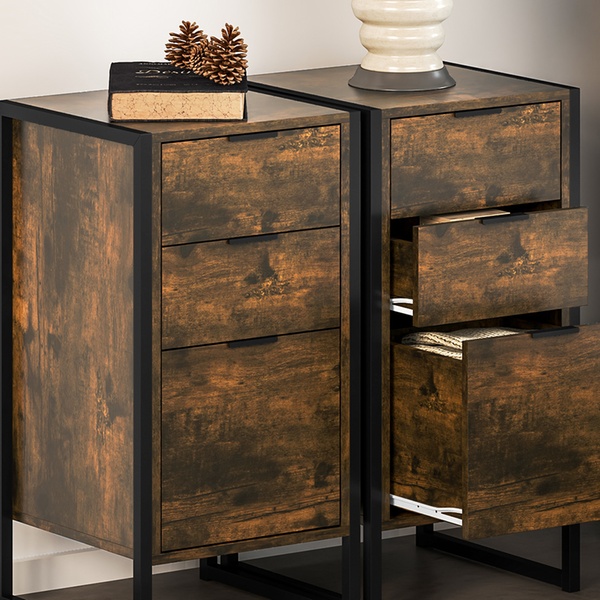 Elevate any space with a modern industrial design, featuring three spacious drawers for organized storage and sturdy steel frame support