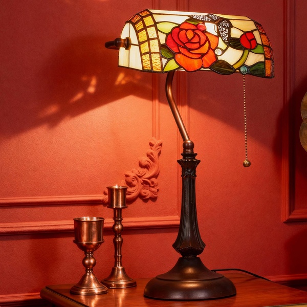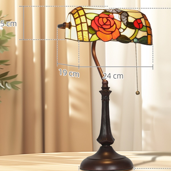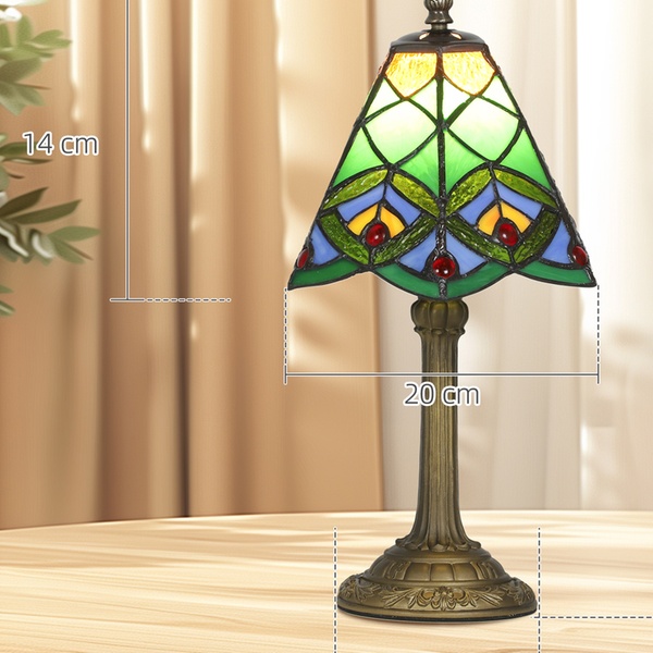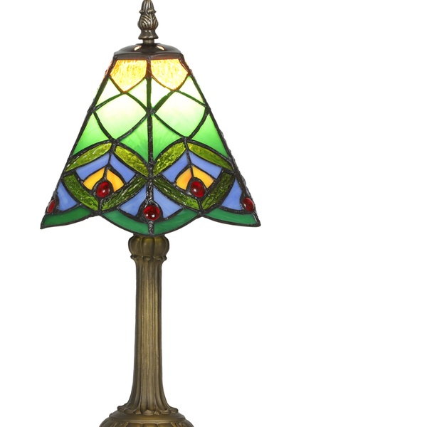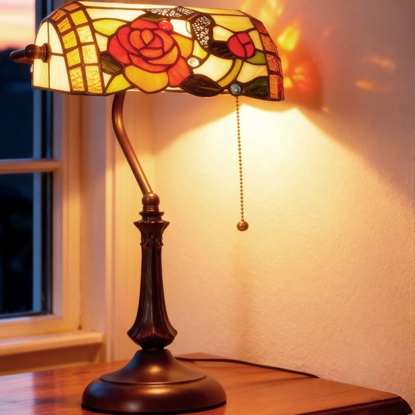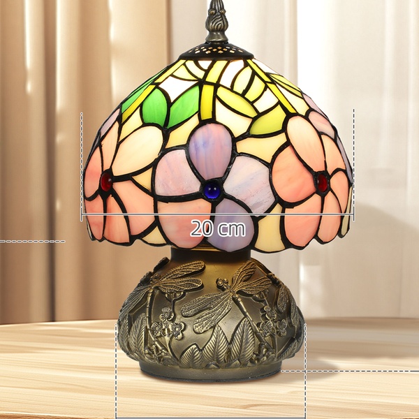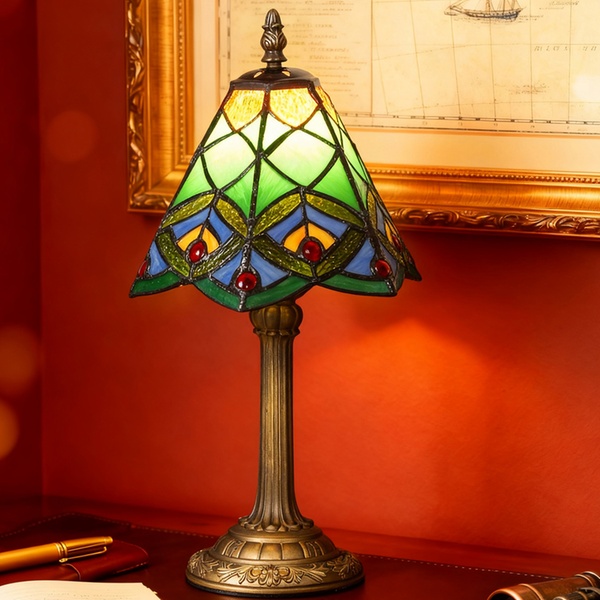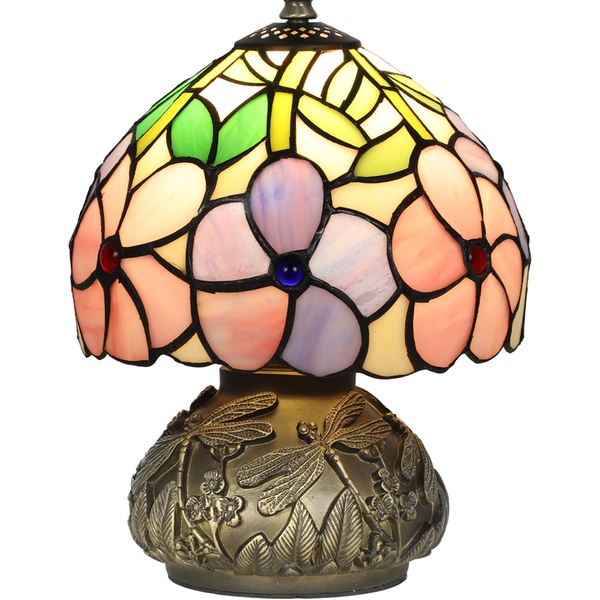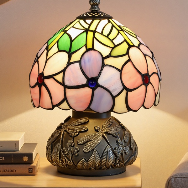 - Compact handcrafted table lamp with elegant floral stained-glass shade