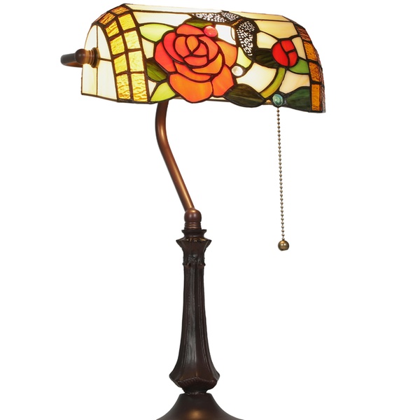 - Tiffany-style lampshade handcrafted from colourful glass with rose and butterfly motifs