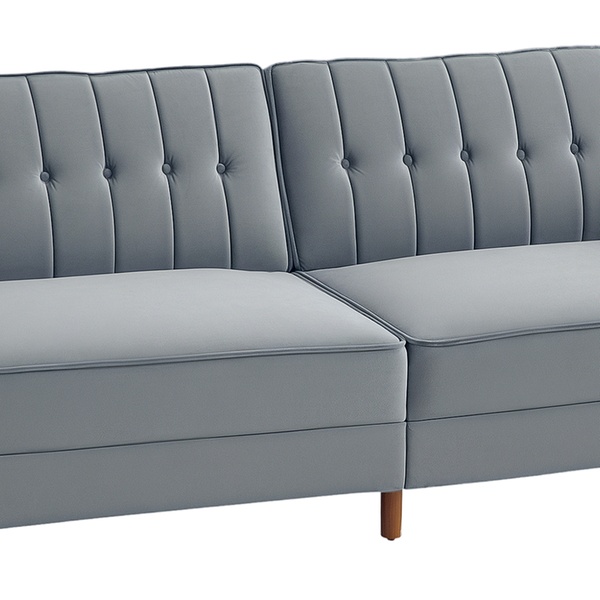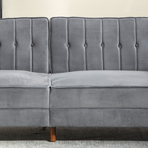 - Wooden legs for full support. The middle metal leg transforms the couch into a bed
