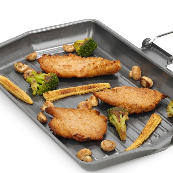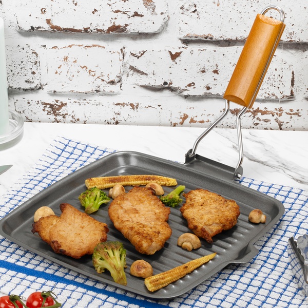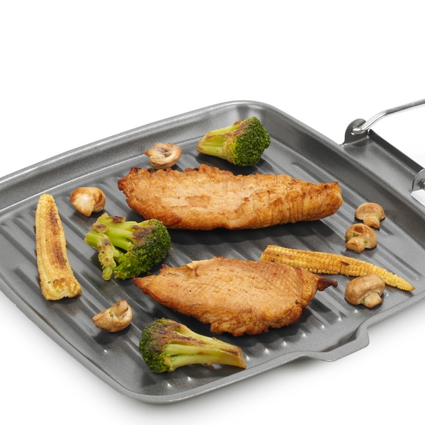 Crafted from durable carbon steel, this grill pan features a non-stick surface and a convenient pouring lip for easy clean-up